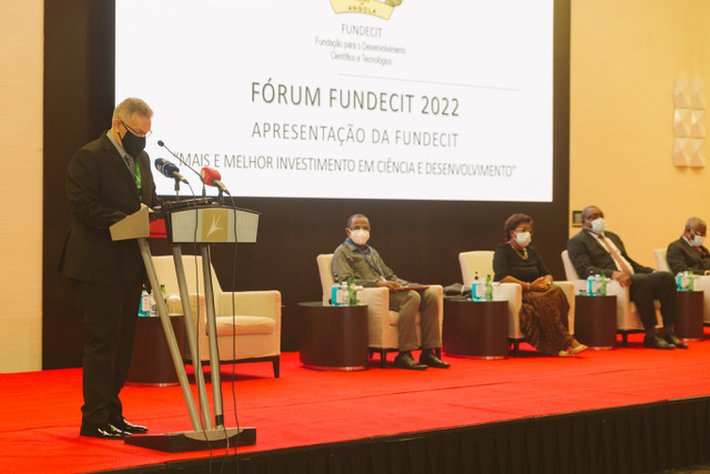 Seguidamente, desenvolveu-se uma mesa redonda com participação presencial e online de Instituições de Ensino Superior e de Instituições de Investigação em todo o País, moderada pelo Prof. Dr. Ricardo Queirós e pelo Prof. Dr. Jone Heitor, onde quatro ilustres cientistas apresentaram e debateram as diversas experiências, sucessos, constrangimentos, opiniões, perspectivas e propostas sobre o financiamento da ciência em Angola.